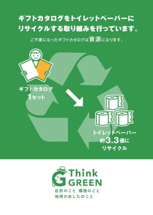 サーキュラー・エコノミーの推進を掲げる当社では、お客様から店頭で回収した夏の贈り物・冬の贈り物ギフトカタログを暮らしに役立つトイレットペーパーにリサイクルし、お客様にお渡しする取り組みを行っています。