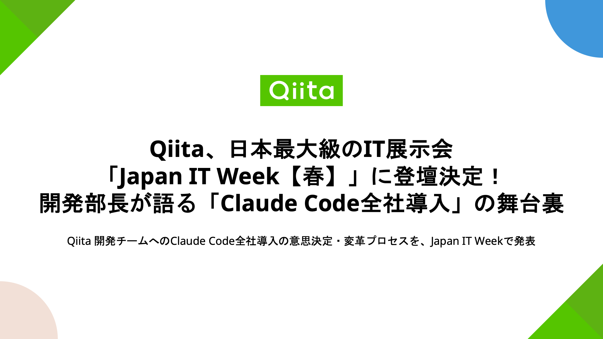Qiita、日本最大級のIT展示会「Japan IT Week【春】」に登壇決定!開発部長が語る「Claude Code全社導入」の舞台裏