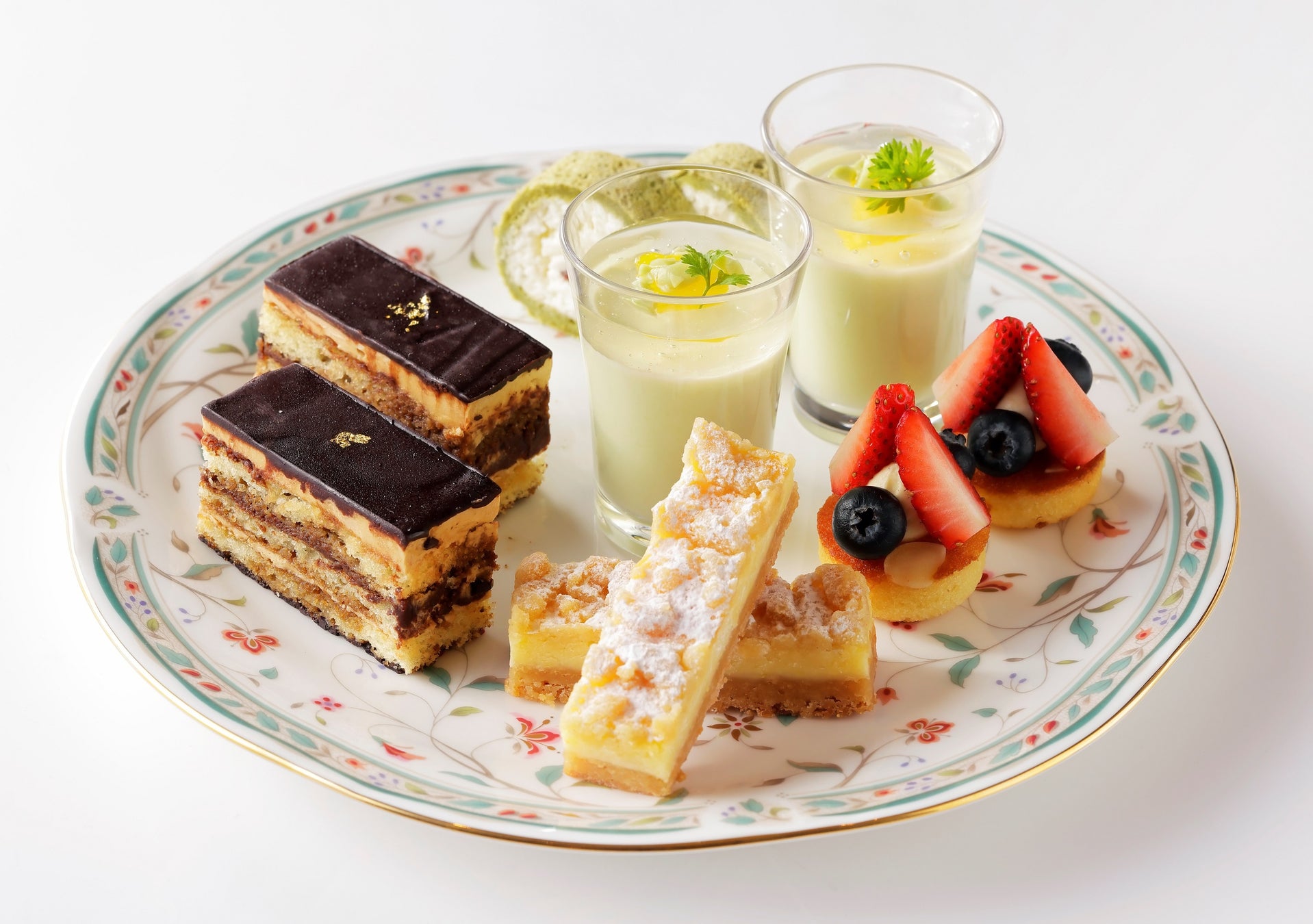 今回、ラウンジ「オーロラ」にアフタヌーンティーセットが初登場いたします。グループホテルとなる『ホテル日航ノースランド帯広』と『JRタワーホテル日航札幌』それぞれのシェフが共同で手がけたコラボレーションメニューをお楽しみいただけます。十勝産枝豆を使い、爽やかな初夏を表現した「枝豆のパンナコッタ 白ワインゼリー」、小豆と滑らかな生クリームを抹茶生地で巻いた「抹茶のロールケーキ」や、チョコレートガナッシュ、コーヒークリームとアーモンド生地の層を重ねた「オペラ」などのスイーツのほか、しっとりと柔らかく仕上げた鶏肉のコンフィを使った「チキンとキャロットラペのサンドイッチ」や「サーモンのムース」などのセイボリーを3段トレイに美しく盛りつけてご提供します。