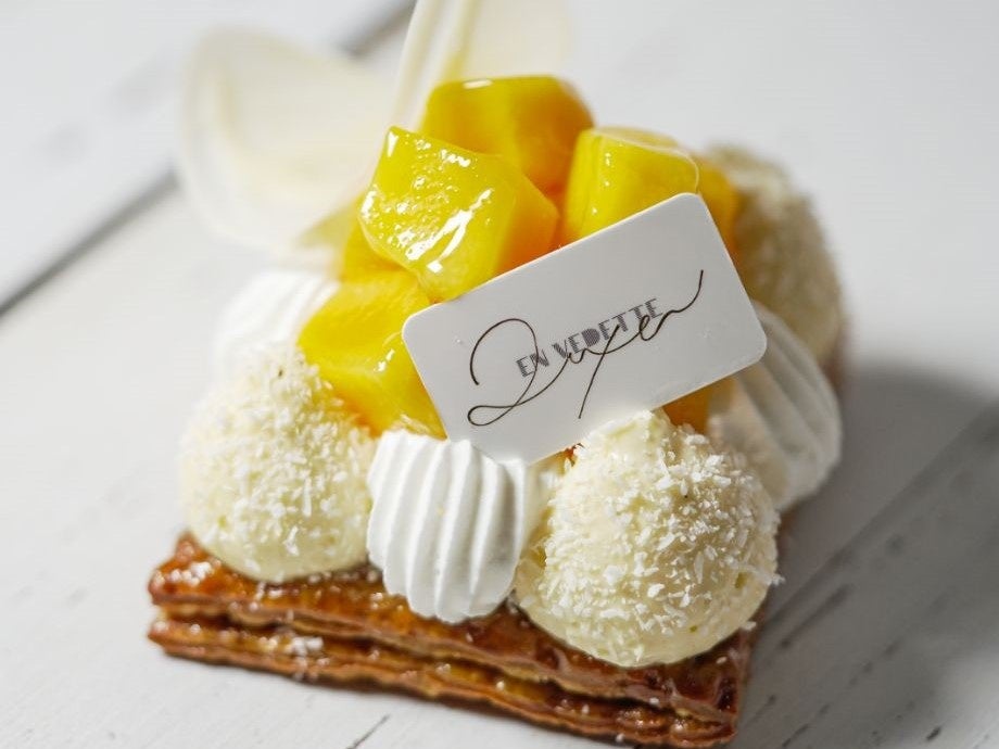 東京・清澄白河に本店を持つ<アンヴデット>の新業態として2023年3月に東京・八重洲にオープンしたブランド。オーナーシェフ森大祐氏とともにショコラトリーでの勤務経験もある柏原貴子氏と手がけるクレープやパフェも人気。会場では焼きたてのパイに、フレッシュのマンゴー、ココナッツをまぶしたディプロマットクリーム、シャンティを合わせたサクサクとした伊勢丹新宿店限定のミルフィーユをお楽しみください。