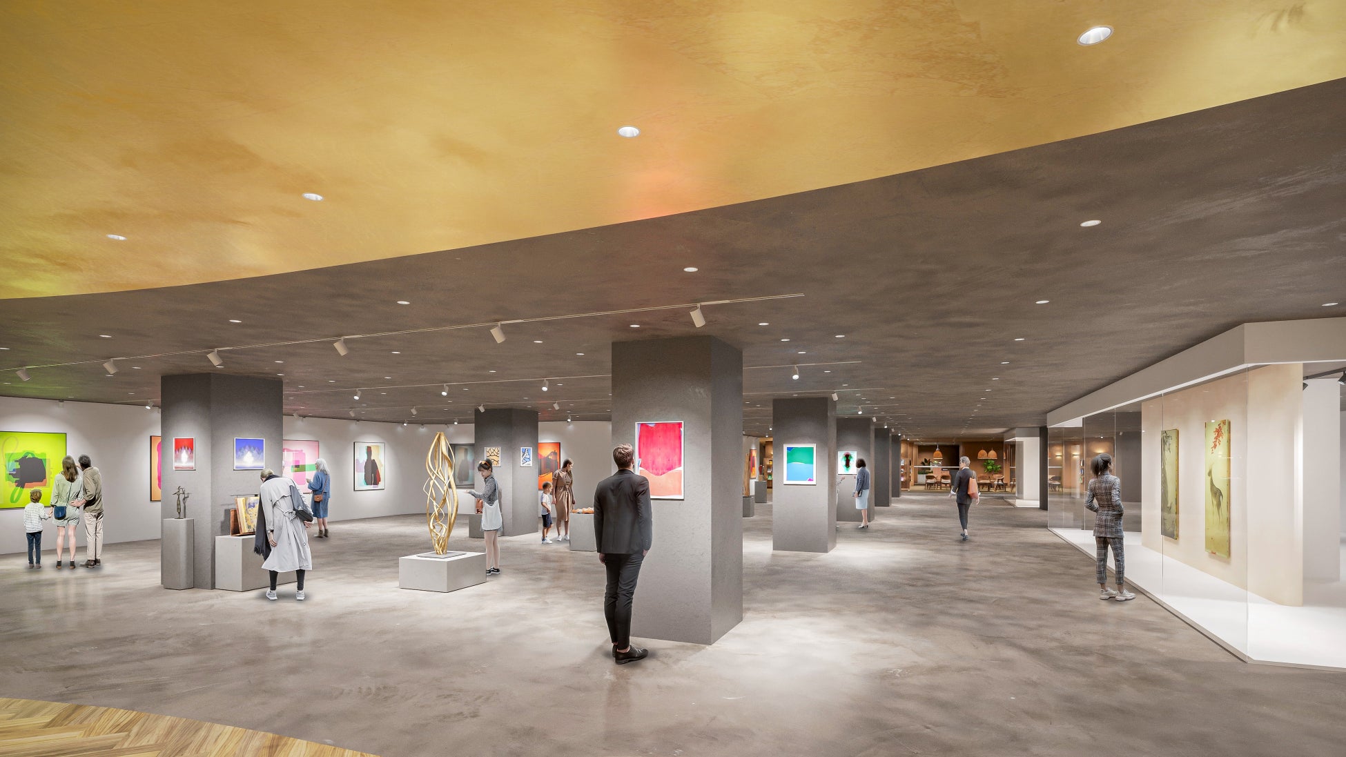 国内百貨店では初めてとなる、ワンフロア全てをアート空間に全面リニューアル。 『東海エリアのアートマーケットのハブに』をコンセプトに、展開面積を約2.5倍に拡大した 国内トップクラスのアートゾーンが誕生します。2つの画廊に加え、新たに「オープンギャラ リー」やカフェを増設し、6つのゾーンで構成するアートフロアは、若手から巨匠までお客様の巨匠までお客様の感性を満たす様々なアートとの出会いを生み出す場となります。※ブランド一覧は特設サイトをご覧ください。