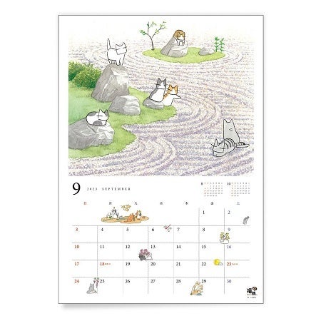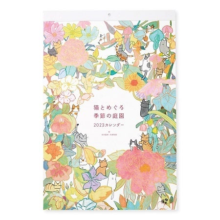 色鮮やかな庭園を猫といっしょに旅する気分が味わえる、日本画家 久保智昭さんが描き下ろした「猫とめぐる季節の庭園カレンダー2023」がフェリシモ「猫部™」から登場