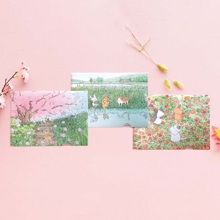 四季折々の日本の風景と自由気ままな猫たちを堪能できるクリアファイルのセットです。