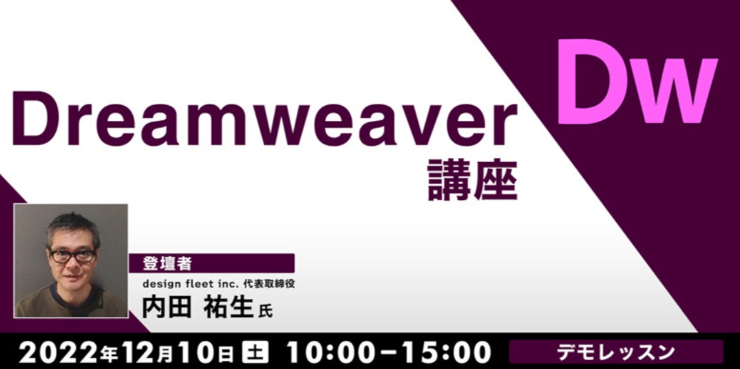 【Webクリエイター向け】Dreamweaverで一歩先行くサイトを作ろう!12/10(水)無料デモレッスン「Dreamweaver講座」(オンライン)