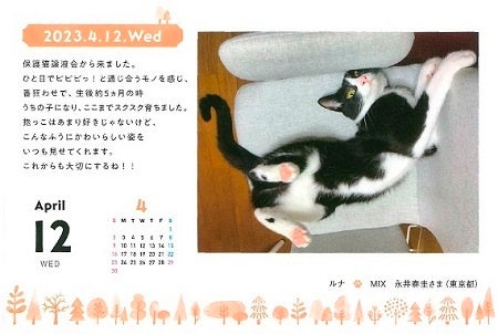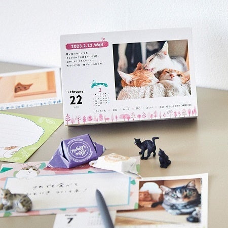 フェリシモが展開する「猫部™」は、愛猫家から募集した猫の写真でつくる日めくりカレンダー「まいにちにゃんこ2023」のウェブ販売を9月20日より開始しています。毎年、応募される多くの写真の中から一年分を厳選した大人気のカレンダーです。溺愛する猫の写真とともに、心あたたまる猫あるあるなエッセイも添えられていて、一枚一枚めくって写真やエッセイを目にするたび、ほっこり癒やされる猫たちの日常を楽しむ毎日が送れます。めくったあとのカレンダーは裏面がメモとしても使用できます。かわいい猫のイラストが描かれたメッセージカードも2枚付いています。カレンダーは、好きなところに立てて使えるスタンド式で、自宅だけでなく、職場のデスクにも癒やしのアイテムとしておすすめです。同じく2022年9月20日から、2024年の「まいにちにゃんこ」募集も開始しています。販売価格の一部は飼い主のいない動物の保護と里親探し活動、野良猫の過剰繁殖防止活動、災害時の動物保護活動などに活用されます。