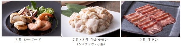 月替わりメニュー:6月 シーフード、 7・8月 牛ホルモン(シマチョウ・小腸)、9月 牛タン