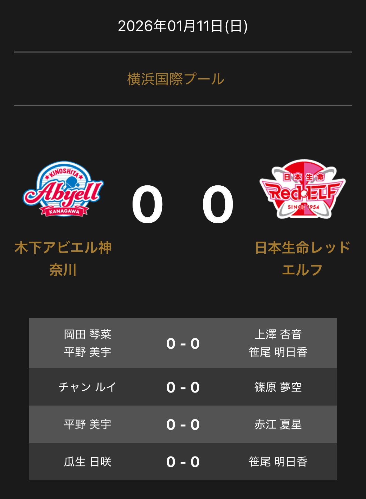 ノジマTリーグ 2025-2026シーズン 公式戦 1月11日開催 木下アビエル神奈川 vs 日本生命レッドエルフ 対戦オーダー発表