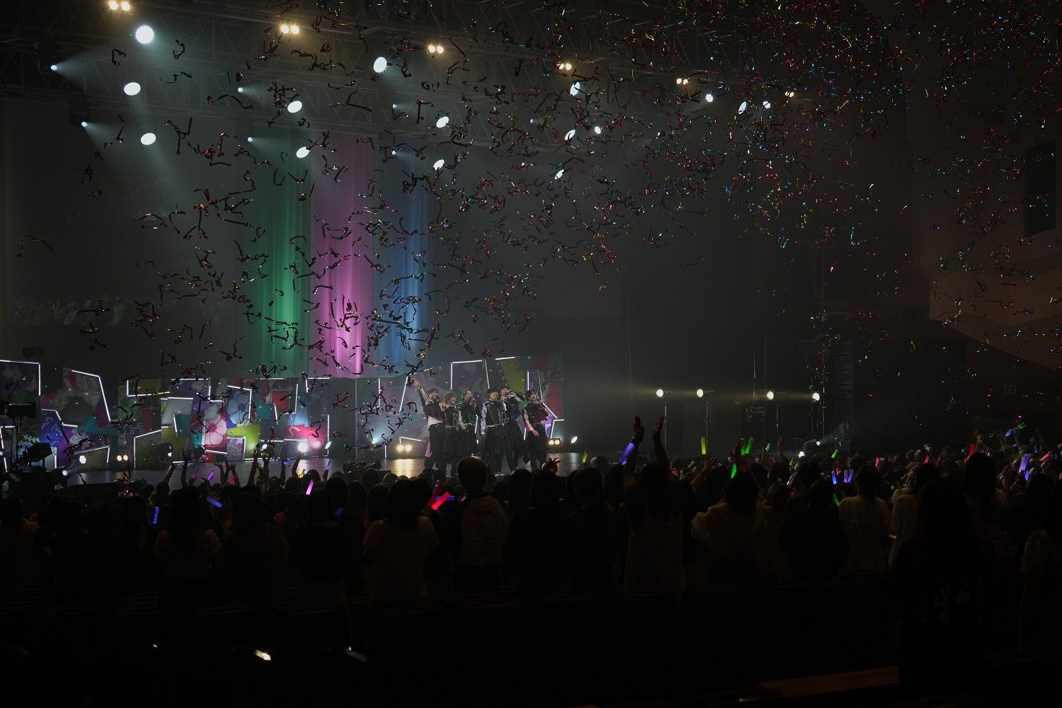 また、ツアーファイナルでは、地方公演でそれぞれ披露したユニット曲を一挙にパフォーマンス。四季、仮屋瀬による「元彼」では、2人のギター演奏、甘い歌声に立方隊はうっとり。市川と双葉による「結婚前提で推してます」では、曲前に2人がオタク姿で登場し、会場を盛り上げた。「childish」では、椚と六花が上裸にジャケットを羽織っただけのセクシーな衣装で魅了し、さらには激しいダンス、クールな歌声で魅せた。