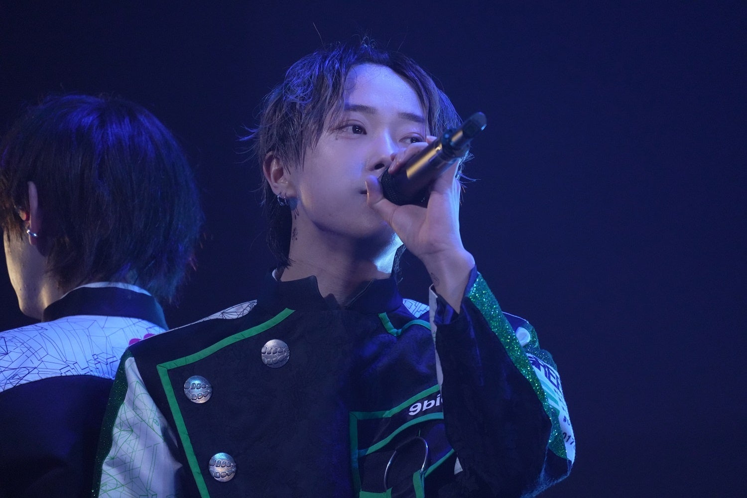 3年ぶりのコール解禁ということで、1曲目の「secret love」から、椚が「声出していけるのか!そのテンションで最後まで楽しんでいきましょう!声出せ!」と絶叫。その後「gimme」「中辛エクスタシー」「また会いたくなる」と続くと、立方隊(9bicのファンネーム)のボルテージは一気に高まった。しかし、ツアーのリード曲「君と僕、繋ぐ景色」に入ると、会場の雰囲気が一変し、優しい歌声の虜になっていた。