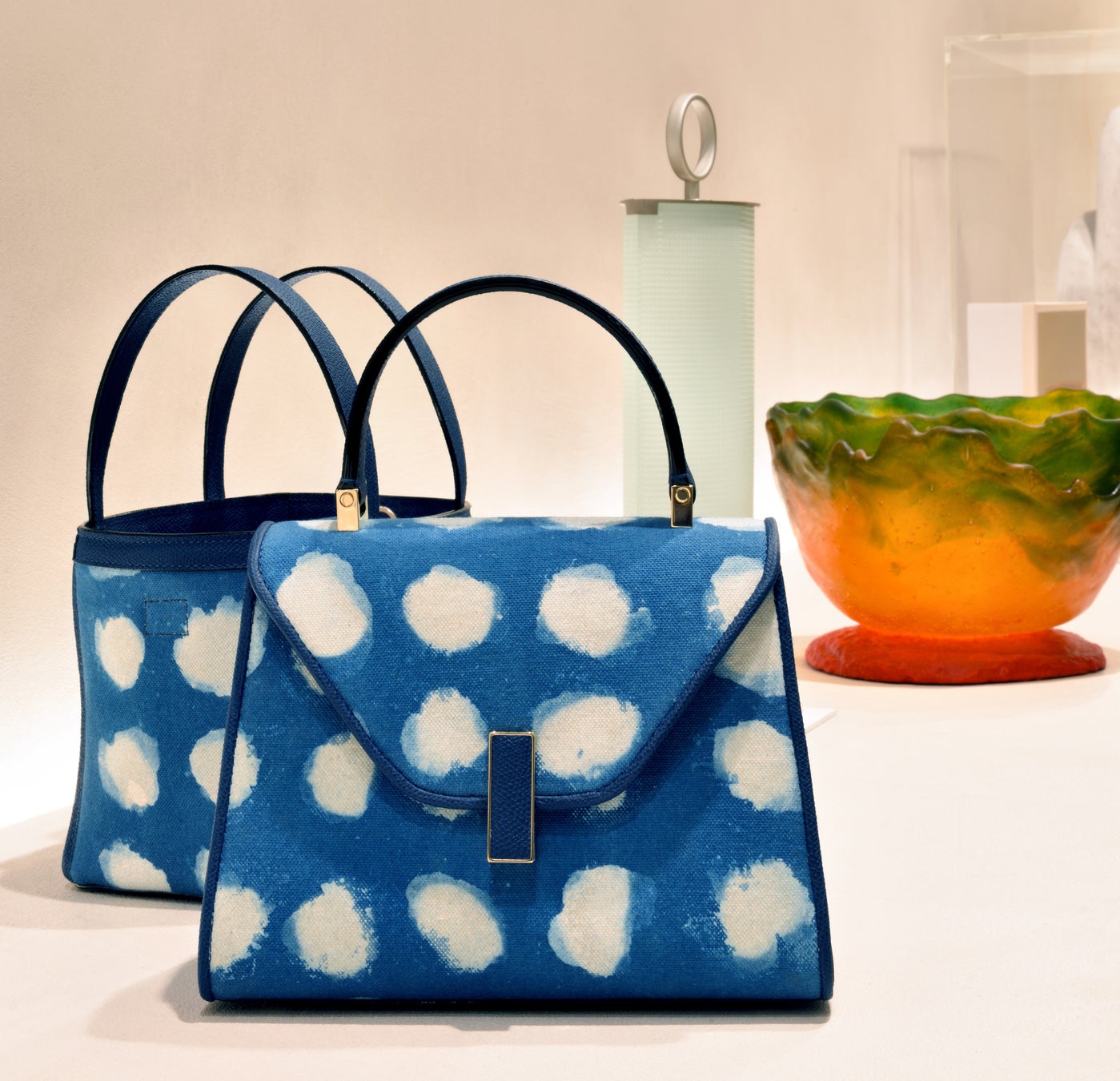 京藍染師の松﨑陸さんとイタリア発のレザーブランド<ヴァレクストラ>の共創により、日本古来の美しいブルーをまとったアートのような作品が誕生しました。京都の伝統とイタリアの美意識との融合が、ここでしか手に入らない価値を創り出しています。