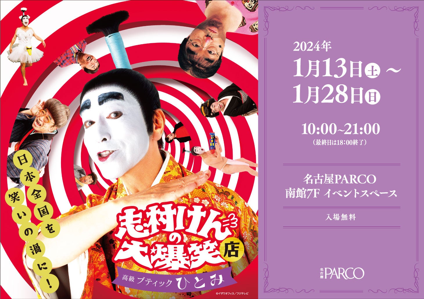 名古屋PARCO(愛知県名古屋市中区)は、『志村けんの大爆笑店~高級ブティックひとみ~』を2024年1月13日(土)より名古屋PARCO 南館7F イベントスペースにて開催いたします。