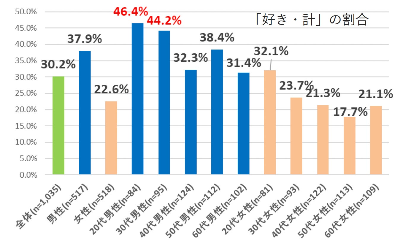 ■「サウナ好き」は全体の30.2% 特に20代~30代男性で高い傾向
