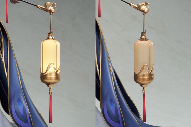 提灯は内蔵LEDにより点灯可能で、幻想的な雰囲気を演出!差し替え表情パーツ「照れ顔」でお気に入りの表情を選んでください。