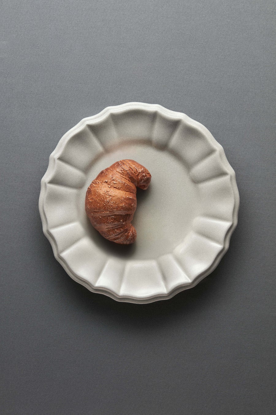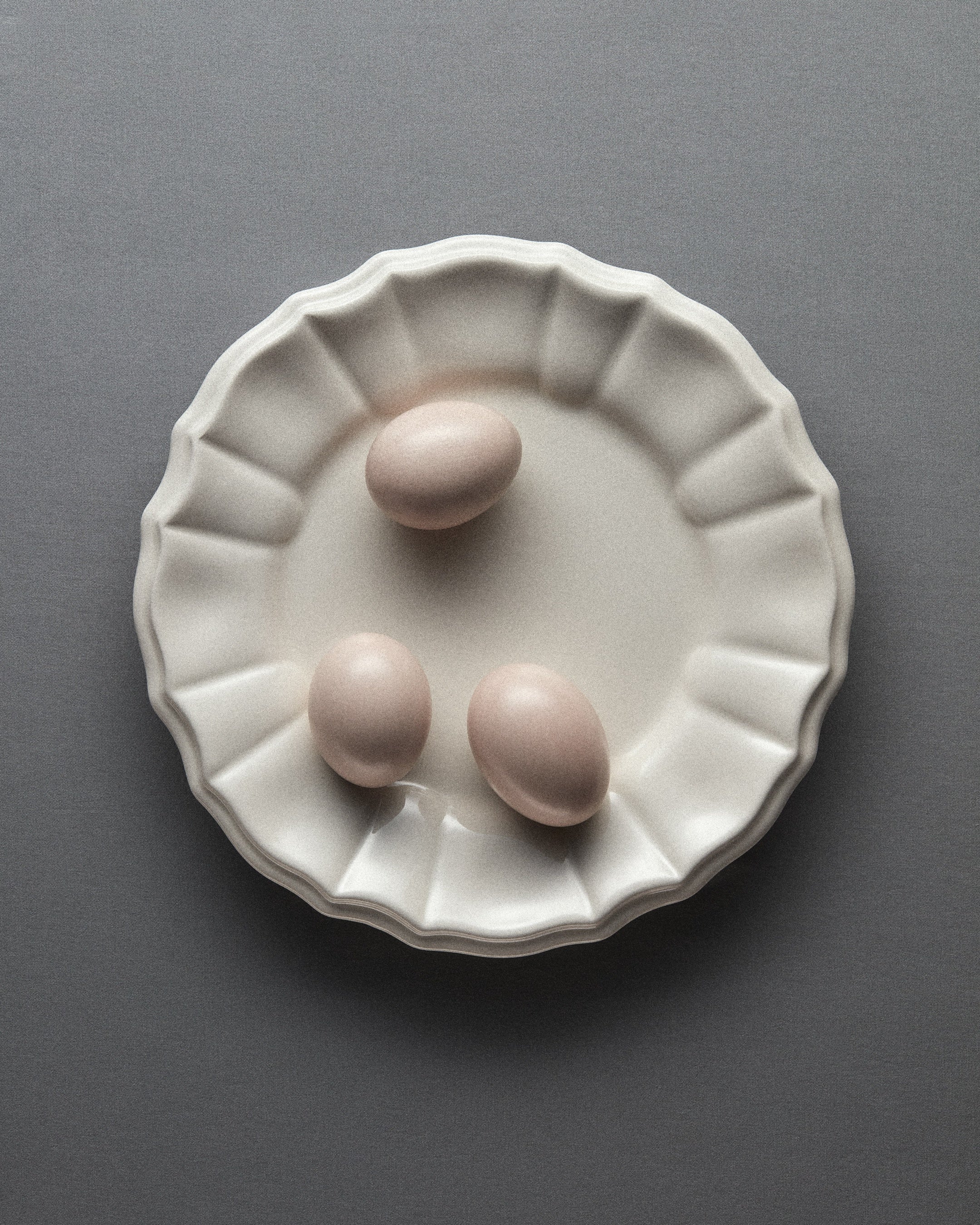 ディオール メゾンは、18世紀のトロンプルイユ(だまし絵)の芸術に敬意を表し、装飾的な陶器のオブジェのコレクションを通して再解釈しました。1975年のディオールのアーカイブからインスピレーションを得た繊細なプレートには、クルミや、クロワッサン、アスパラガス、そして卵が、まるで本物のように描かれ、魅惑的な錯覚を生み出しています。再生の象徴である卵は、「始まりを完璧に表現するメタファー」として、ジョナサン・アンダーソンがディオールでの初めてのショーの招待状に選んだモチーフです。