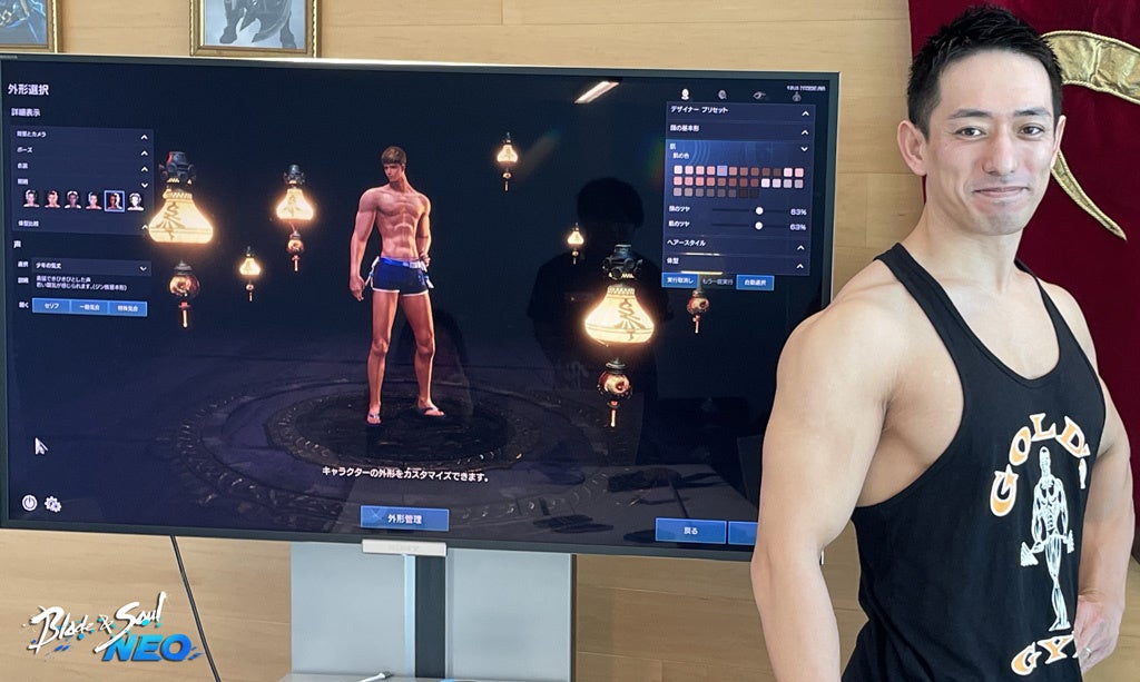 『ブレイドアンドソウルNEO』初のアップデート記念で「ゴールドジム」とコラボレーション!トレーナー兼現役ボディビルダーがブレソネオのキャラクタークリエイト体験!