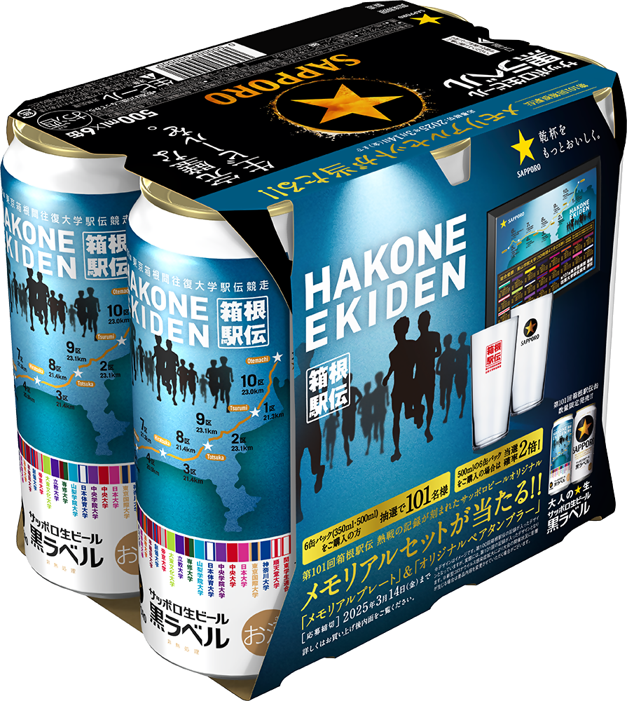 サッポロ生ビール黒ラベル「箱根駅伝缶」350ml缶×6缶パック、500ml缶×6缶パック