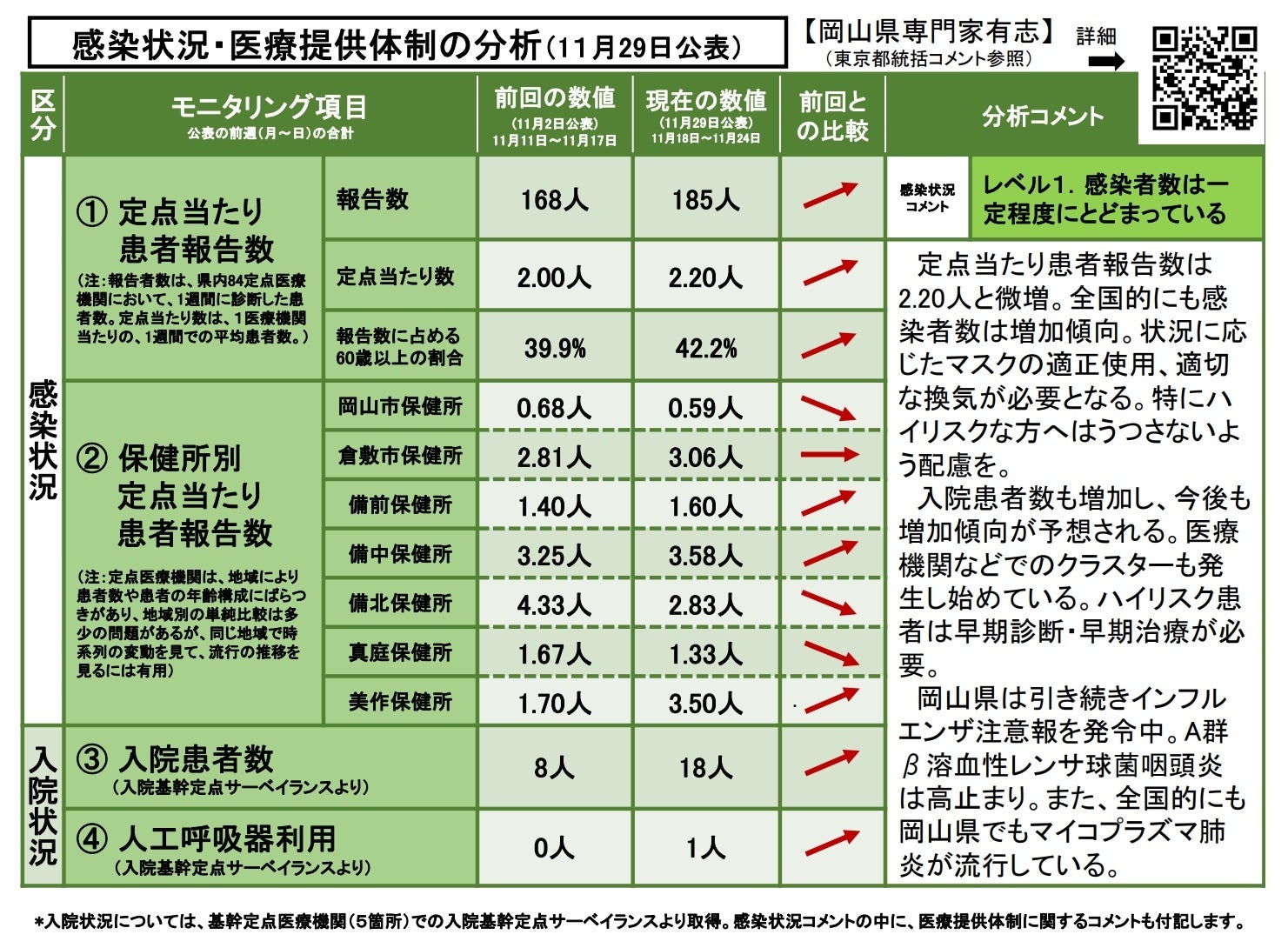 【岡山大学】岡山県内の感染状況・医療提供体制の分析について(2024年11月29日現在)