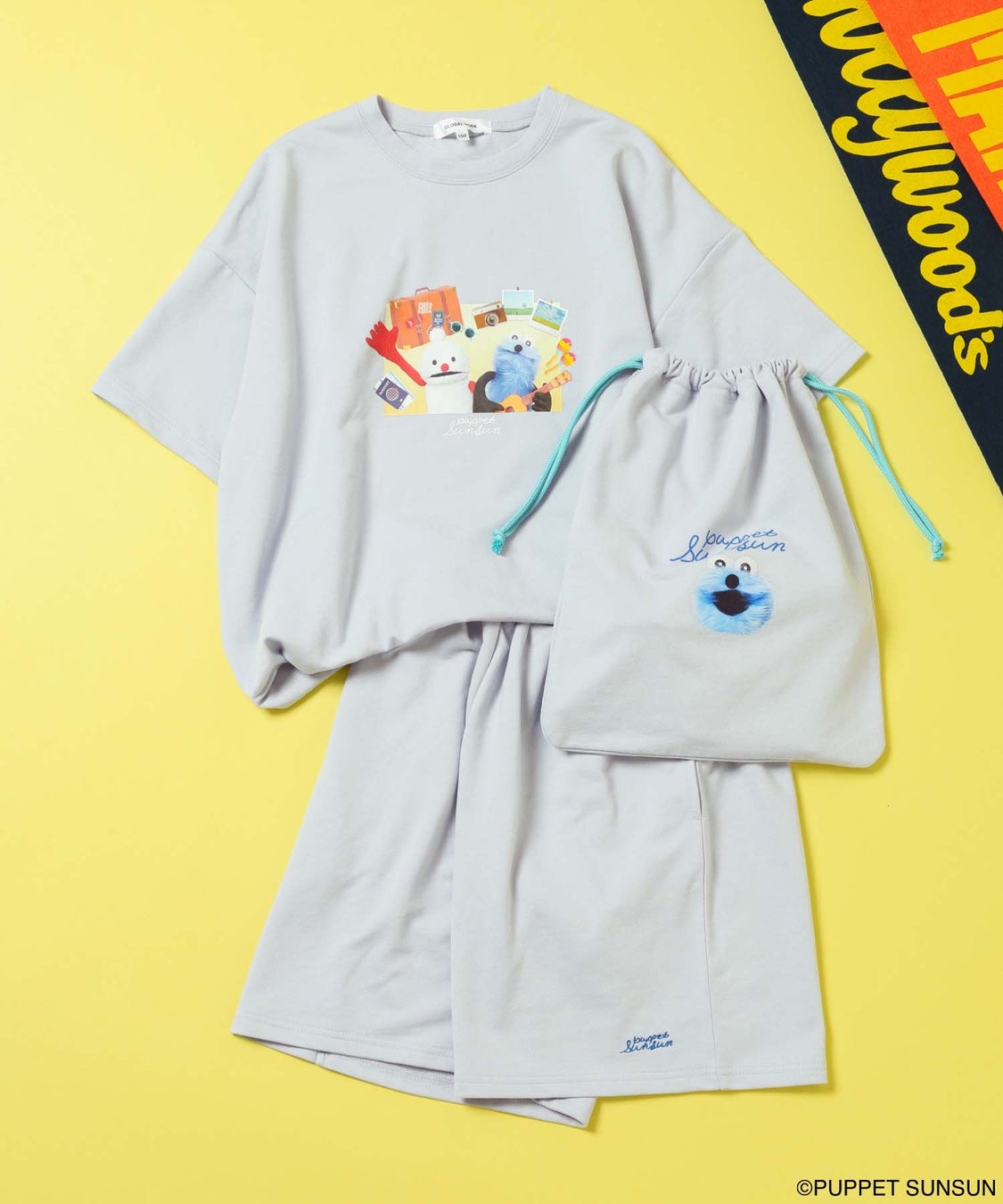 スンスンとノンノンが並んだアートや、旅先でのポラロイド写真など、ここでしか出会えないアートをプリントしたルームウエアです。巾着付きなので宿泊行事にもおすすめです。