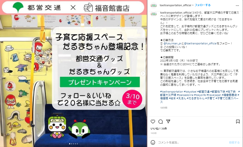 東京都交通局公式Instagram上にて、プレゼントキャンペーンを実施。