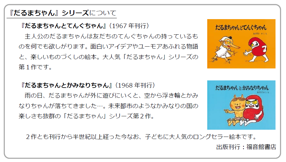 この度、絵本「だるまちゃん」シリーズの装飾を新たに施した車両を3編成、「ぐるんぱのようちえん」デザインの車両を1編成追加し、3月4日から順次運行を開始することとしましたので、お知らせします。