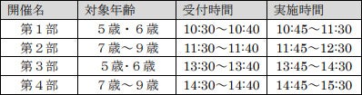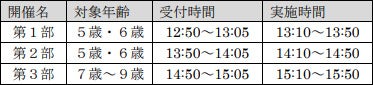開催時間:次のとおりです。対象年齢にご注意ください。