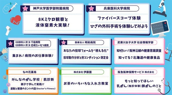 阪神甲子園球場の内野2階コンコース(3塁側)、スタジアム別棟下において、沿線地域の医療を支える医療機関である神戸大学医学部附属病院、兵庫医科大学病院、千船病院、尼崎だいもつ病院、明和病院に加え、なの花西日本、伊藤園、武庫川女子大学が、「健康」と「医療」について楽しく学べるコンテンツを提供します。