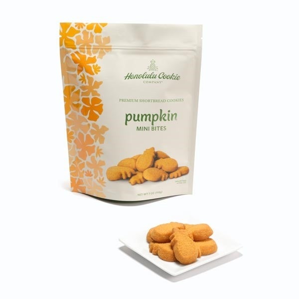 ジッパー付きの袋に、パンプキン・ミニ・バイツがたっぷり入った商品です。