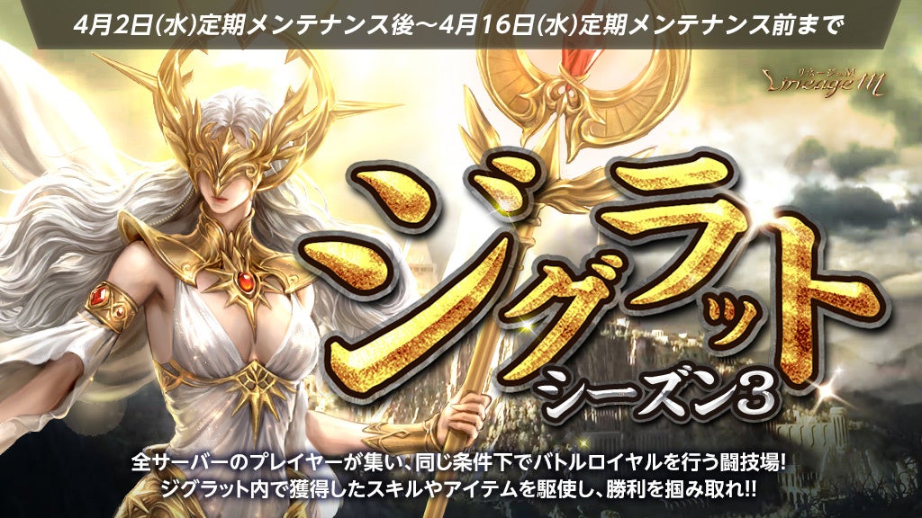 PCオンラインRPG「リネージュ」のモバイル版タイトル『Lineage M(以下、リネージュM)』のサービス、運営をしているエヌ・シー・ジャパン株式会社(本社:東京都港区、代表取締役:林 元基(イム ウォンキ)、以下エヌシージャパン)は、2025年4月2日(水)にバトルロイヤル形式のPVPコンテンツ「ジグラット」シーズン3の開始、および攻略wikiメディア「AppMedia」とのコラボレーションイベント「神話級魔剣士合成チャレンジ」の開催をお知らせします。