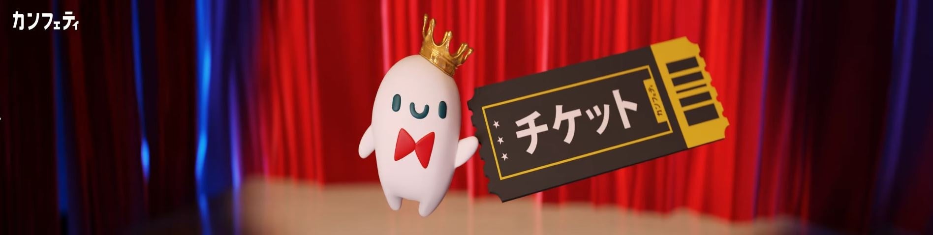 10月8日(火)~10月14日(月)に放映されるのは、カンフェティ公式キャラクター「こんぺち」が登場するポップでキャッチーなCM。こんぺちは、シアター情報誌「カンフェティ」の創刊200号を記念して誕生した、カンフェティの語源でもある「紙ふぶきの精」という設定をもつキャラクターです。