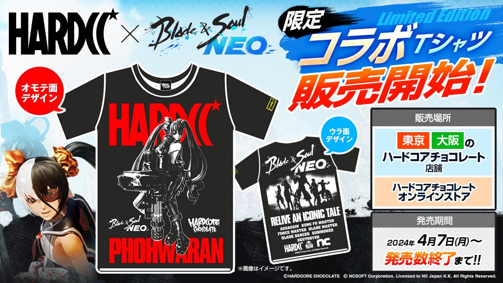 エヌ・シー・ジャパン株式会社(本社:東京都港区、代表取締役:林 元基(イム ウォンキ)、以下エヌシージャパン)は、PCオンラインゲーム『ブレイドアンドソウル』のリメイク作品となる『ブレイドアンドソウルNEO』のサービス開始を記念し、アパレルブランド『ハードコアチョコレート』との限定コラボレーションTシャツを本日2025年4月7日(月)に販売開始したことをお知らせします。