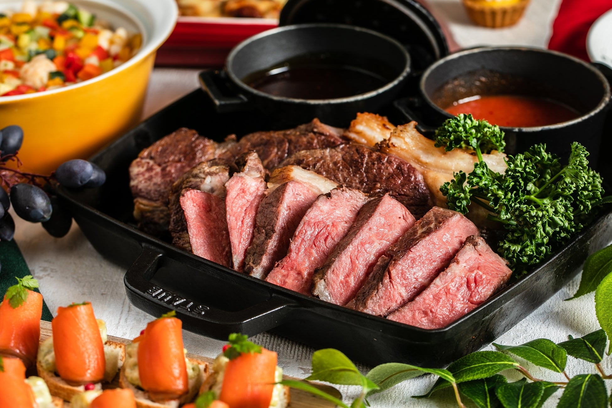 「ブッフェレストラン エトワール」では、川越の名産品「はつかり醤油」で香り高く仕上げたソースでお召しあがりいただく「塩麹とハーブでマリネした牛肉のタリアータ (土休日限定)」や、ほっこりした甘味と香りがぎゅっと詰まった「川越紅赤芋みつ」を使用した「鴨と埼玉県産野菜の川越紅赤芋みつの照り焼きピザ」など、地元埼玉県産の食材や名産品をイタリア料理へアレンジしたブッフェ料理をお楽しみいただけます。