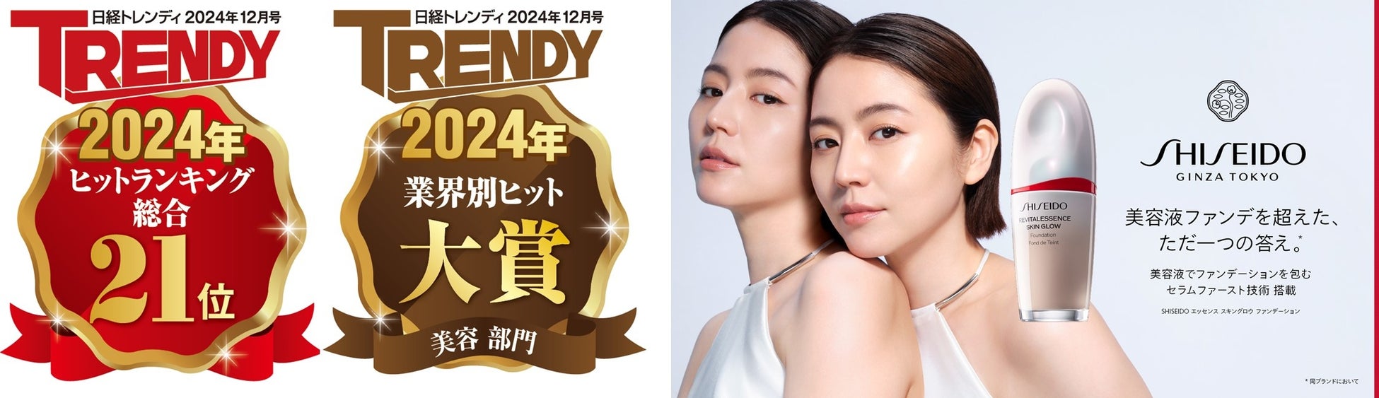日経トレンディ「2024年ヒット商品ベスト30」にて資生堂のファンデ美容液「SHISEIDO エッセンス スキングロウ ファンデーション」が21位選出!!