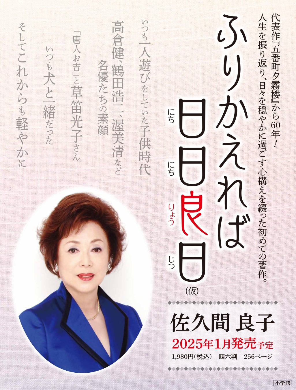 女優・佐久間良子さんが波瀾万丈の人生を振り返り、今の暮らしぶりや日々を楽しく過ごすコツを明かす自伝的エッセイ集『ふりかえれば日日良日』(仮題)を2025年1月、小学館より刊行いたします。