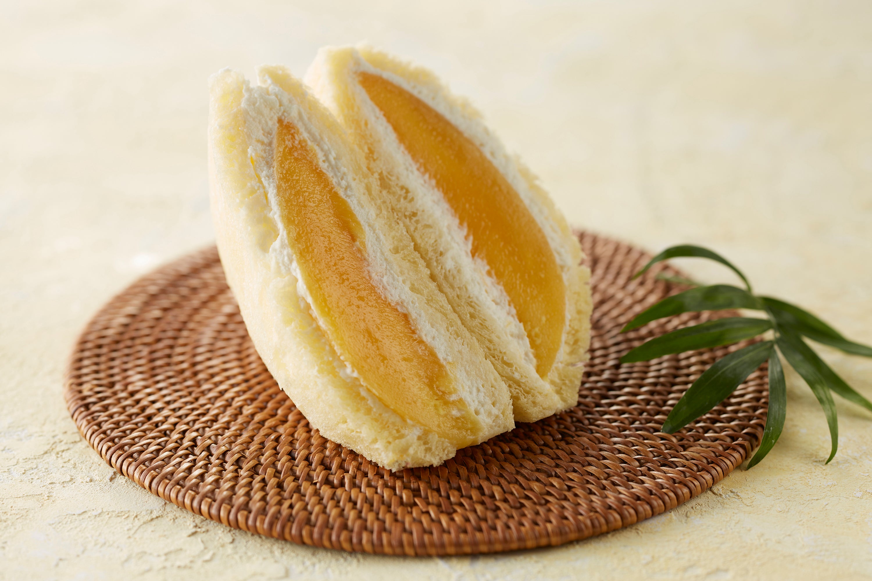 オレンジのピューレを練り込んだパンにマンゴーとマスカルポーネ入りの生クリームを挟みました。旬のマンゴーのジューシーさとクリームのなめらかさをお楽しみください。