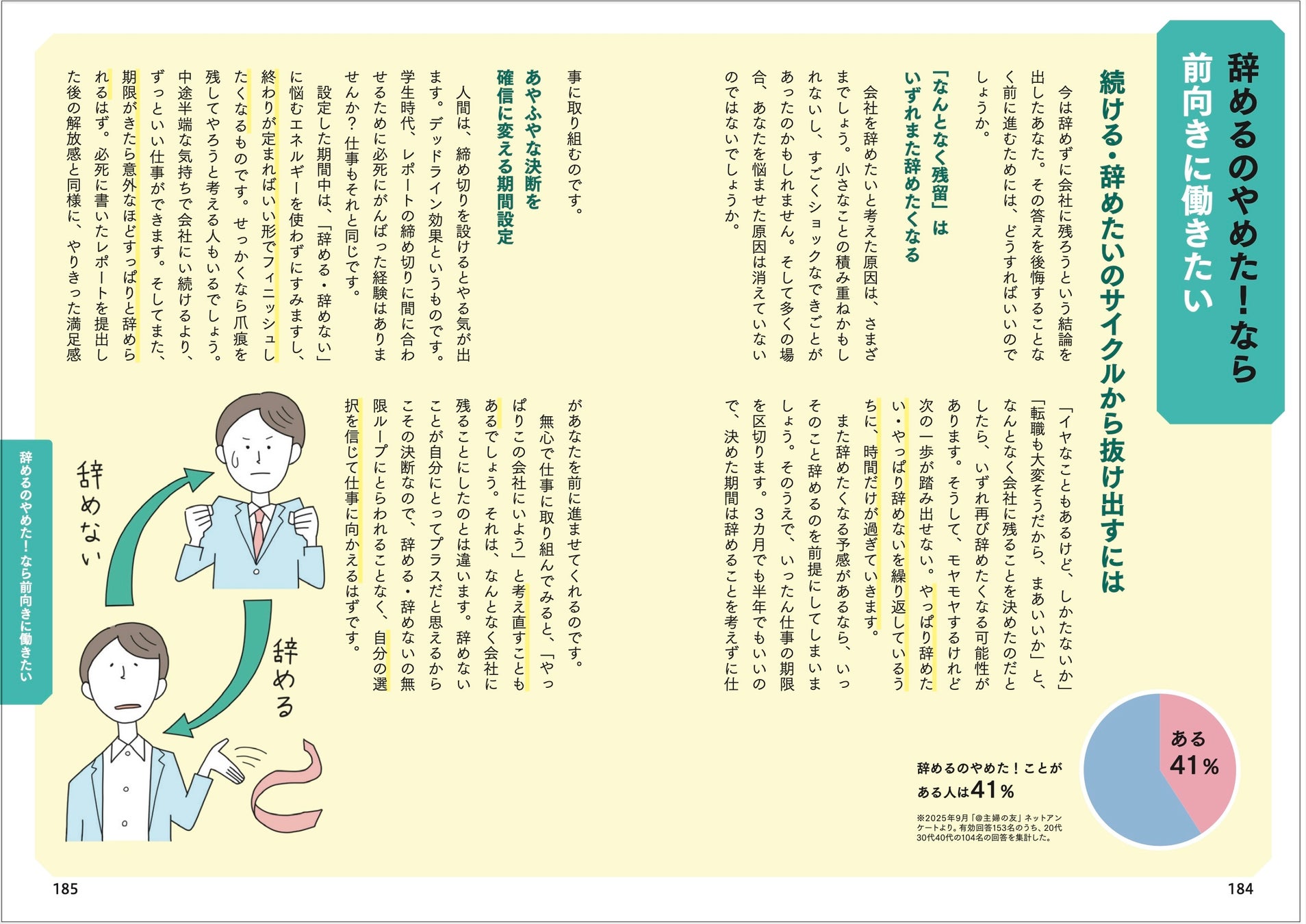 「今の会社にいて本当にいいの?」と感じたら手にとってほしい1冊。転職か会社に留まるべきかの決断方法から転職活動のハウツー、退職の手続きまで、あらゆる情報を完全網羅!