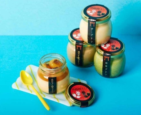 伏見稲荷大社の名物“伏見稲荷プリン”は、京都産の牛乳と宇治の卵を使用した手作りの味わい。お団子に、甘じょっぱいタレが絶妙に絡んだ“みたらし団子プリン”や、小豆ペーストをしのばせたほうじ茶プリンと京都宇治抹茶を使った抹茶プリンなど、和のプリンがずらり。