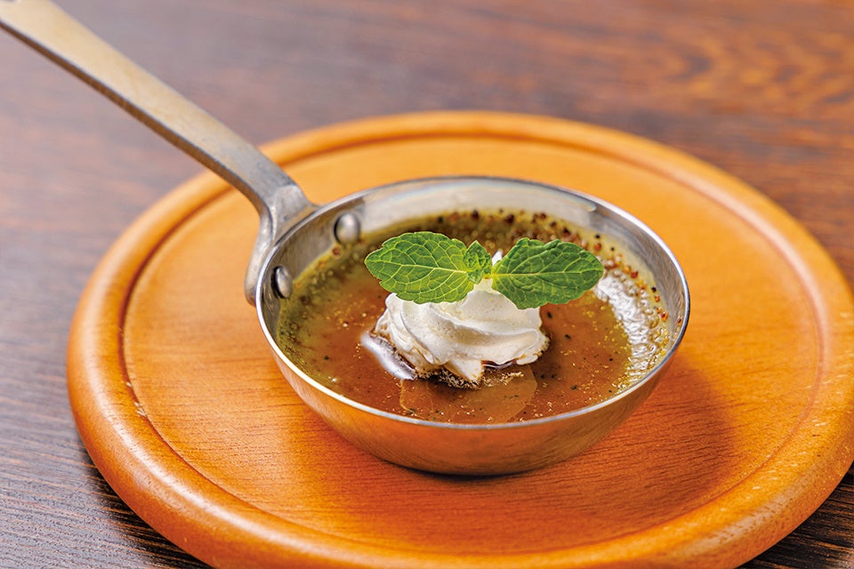 なめらかな口あたり、優しい甘さ、ほんの少しほろ苦い抹茶風味を感じられるシェフオリジナルレシピのクレームブリュレです。