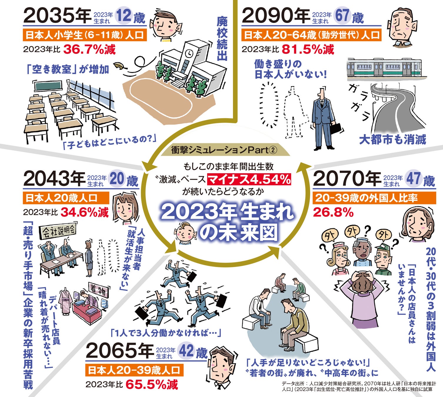 「直近5年間の出生数は毎年4・54%ずつ減少」──。このペースで減り続ければ、日本人は50年で半減、100年後に8割減となってしまう。もはや少子化を止めることはできず、日本社会の激変は避けられない。〝不都合な現実〟に対し、われわれはどうすべきか。