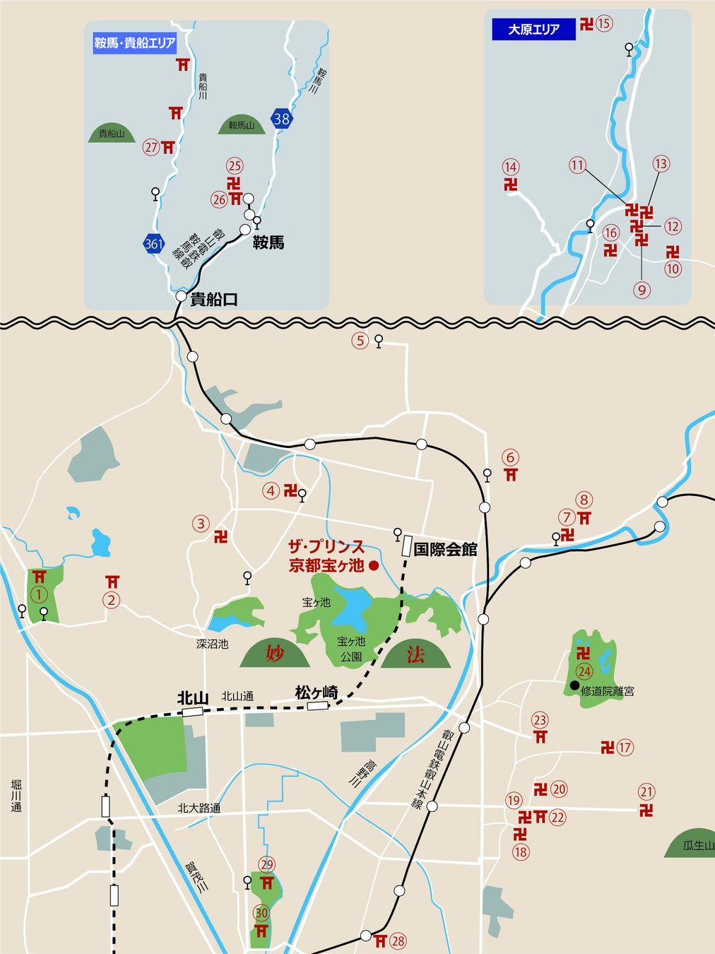 ㉔赤山禅院 ㉕鞍馬寺 ㉖由岐神社 ㉗貴船神社