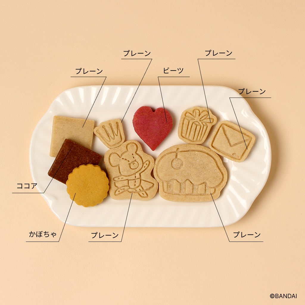 プレーン味のノンタンクッキーに、ココアクッキーなど計40枚が入っています。かわいく、サクッとほろけるクッキーを親子いっしょにお楽しみください。