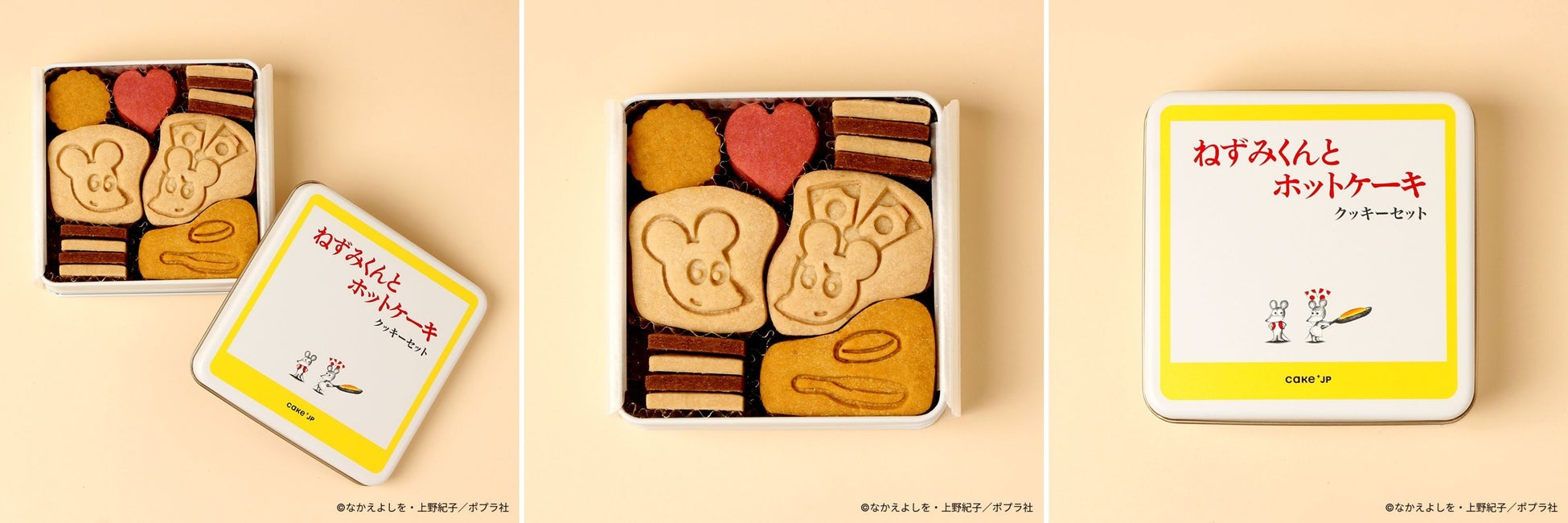 第14巻『ねずみくんとホットケーキ』がクッキー缶として登場。ねずみくん、ねみちゃん、ホットケーキが型押しされたオリジナルクッキーを含む計28枚のクッキーが詰まっています。
