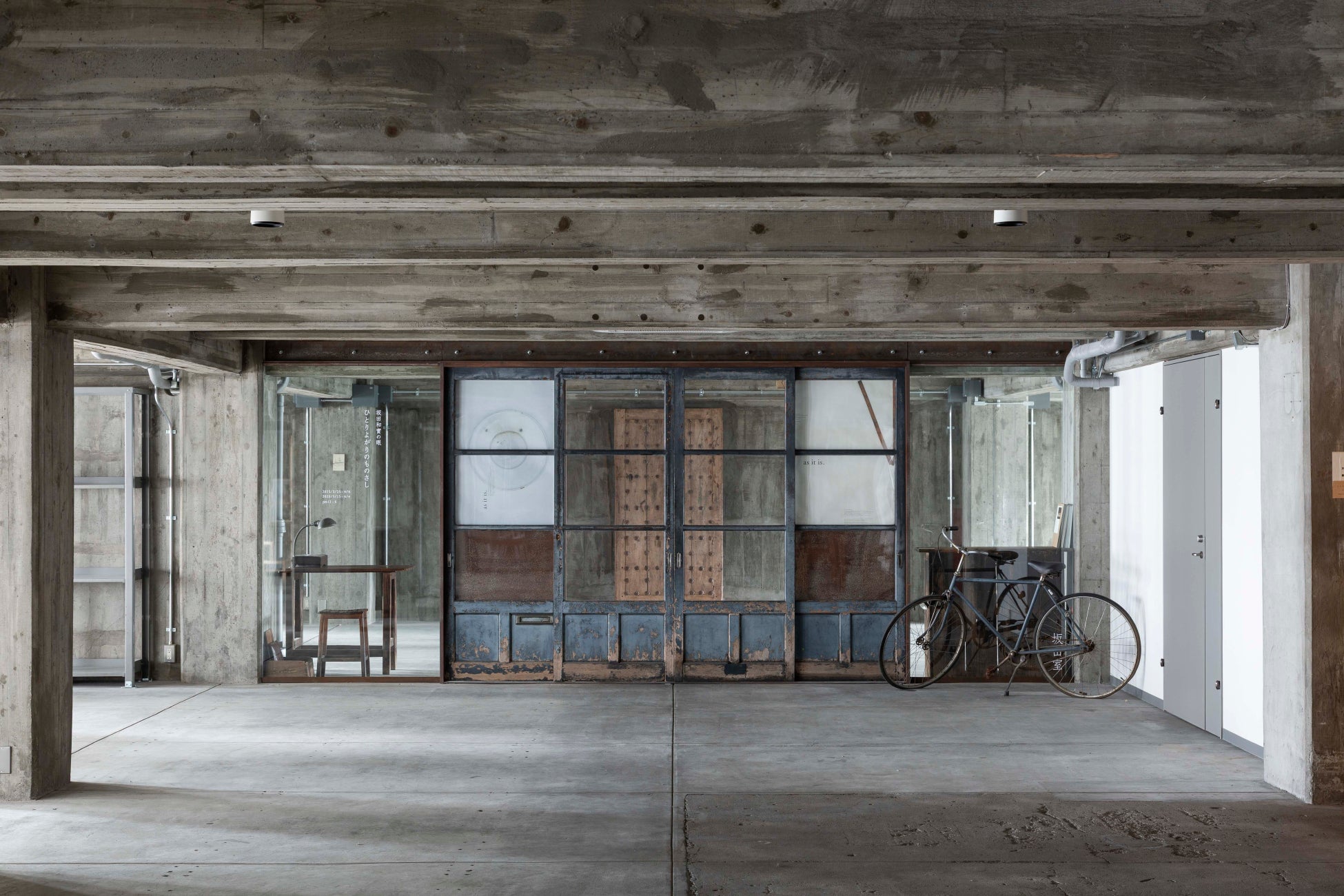 倉庫内は大量の本の荷重に耐えられるよう、コンクリートの太い梁が無数に走り、武骨な内観を見せています。コンクリートの質や工法──木枠の跡による多様な表情、柱梁の角すべてに施された面取りなど──も見どころで、往時の真面目な職人仕事を、時を隔ててまのあたりにする思いです。