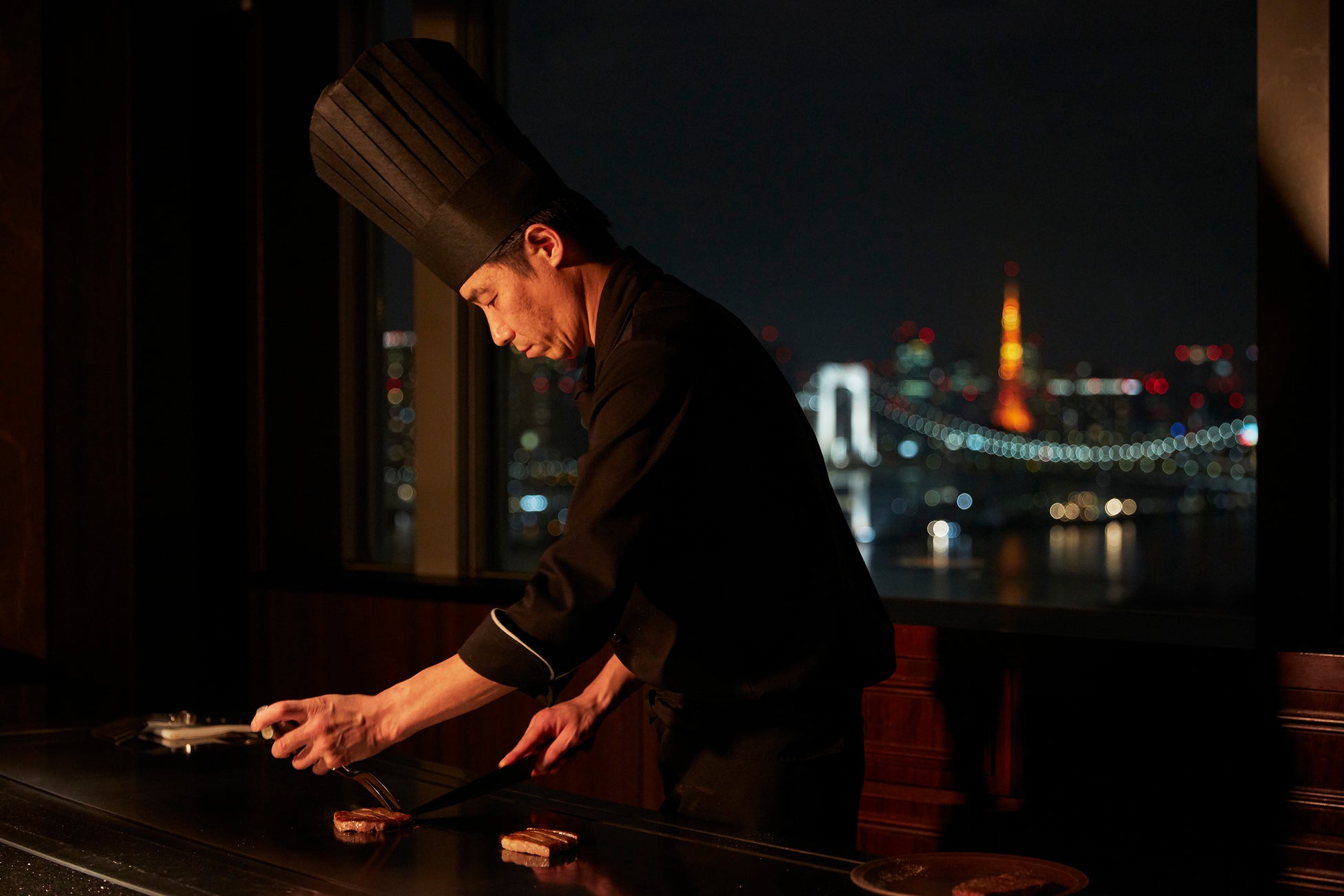 東京の美しい夏の夜景とともに、臨場感のあるシェフのパフォーマンスとこだわりの鉄板焼をご堪能ください。