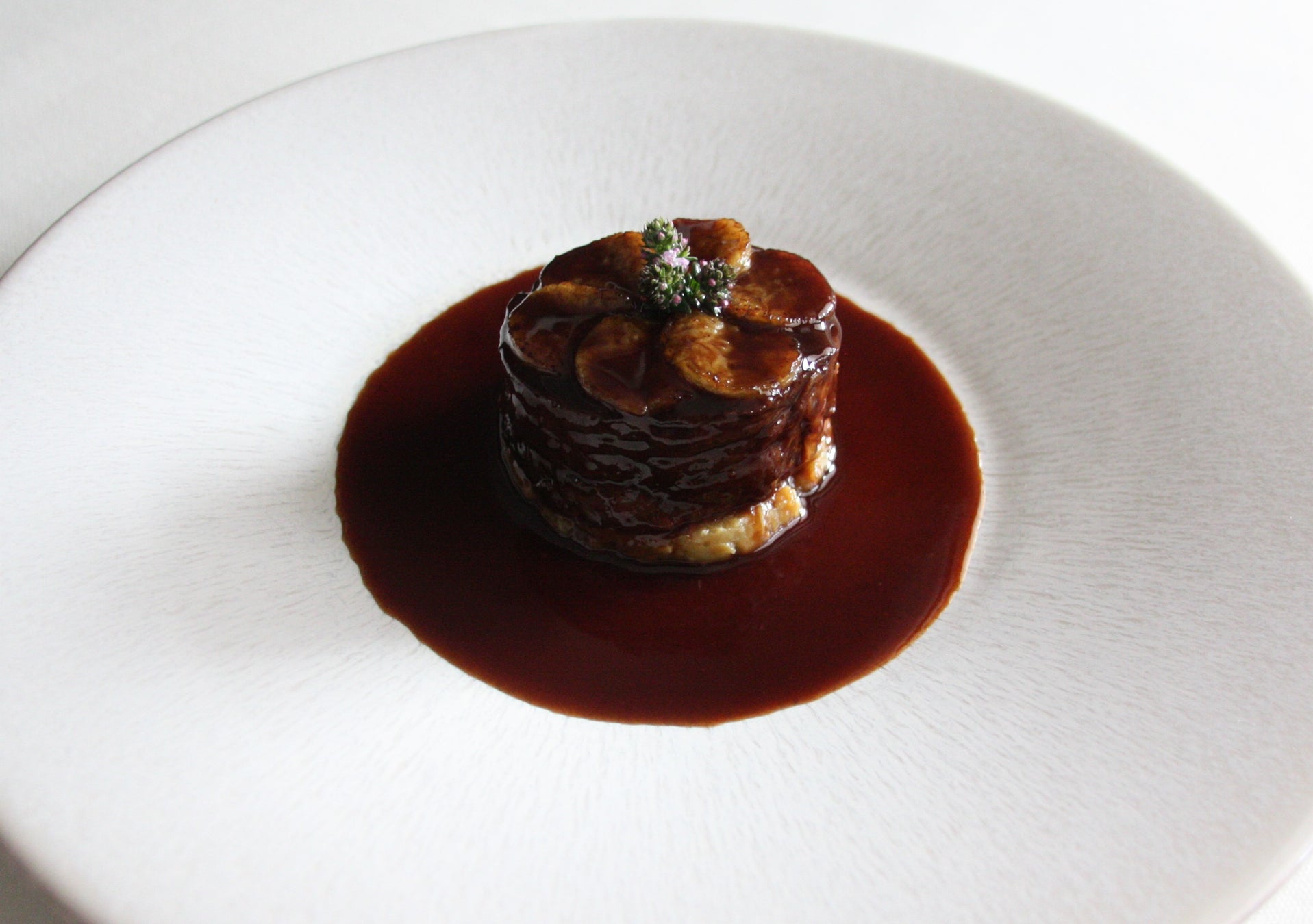 淡水魚を赤ワインで煮込んで作るジュラ地方発祥の伝統料理「ムーレット」を、トリュフの香りで華やかに仕上げたディナーコース限定の逸品。