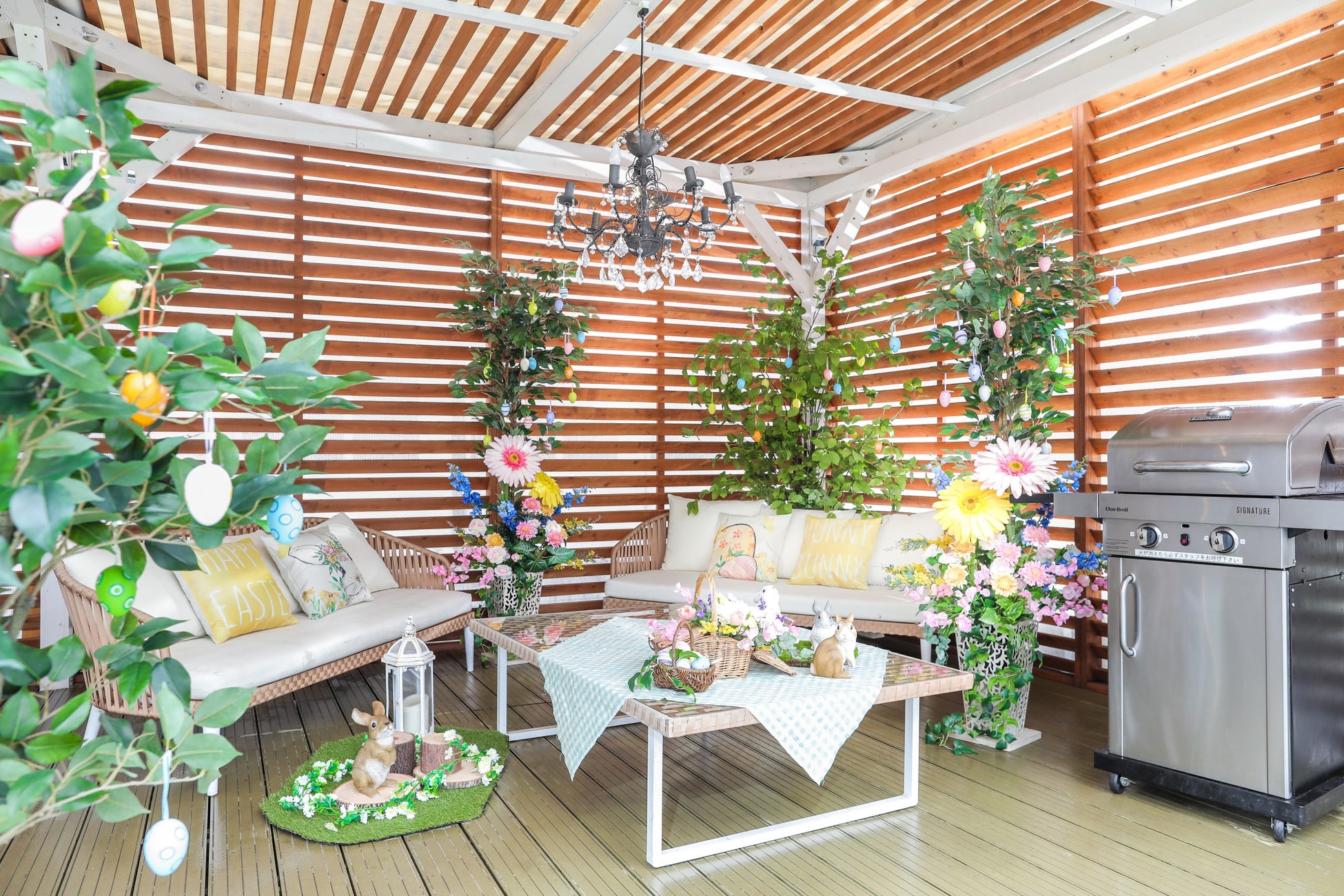 ① イースター装飾がされた華やかなプラン専用バーベキューブース