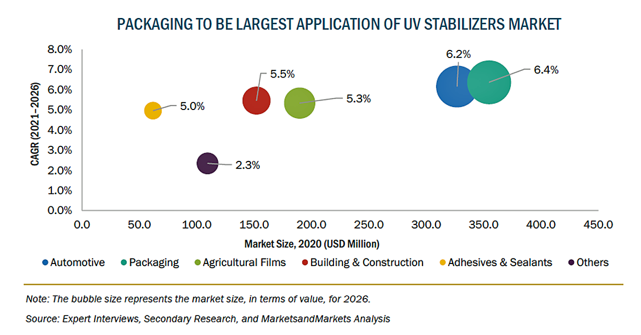 UV安定剤市場は、包装産業と自動車産業に大きく依存しており、COVID-19パンデミックによるサプライチェーンの混乱から、中程度の影響を受けると予想されています。