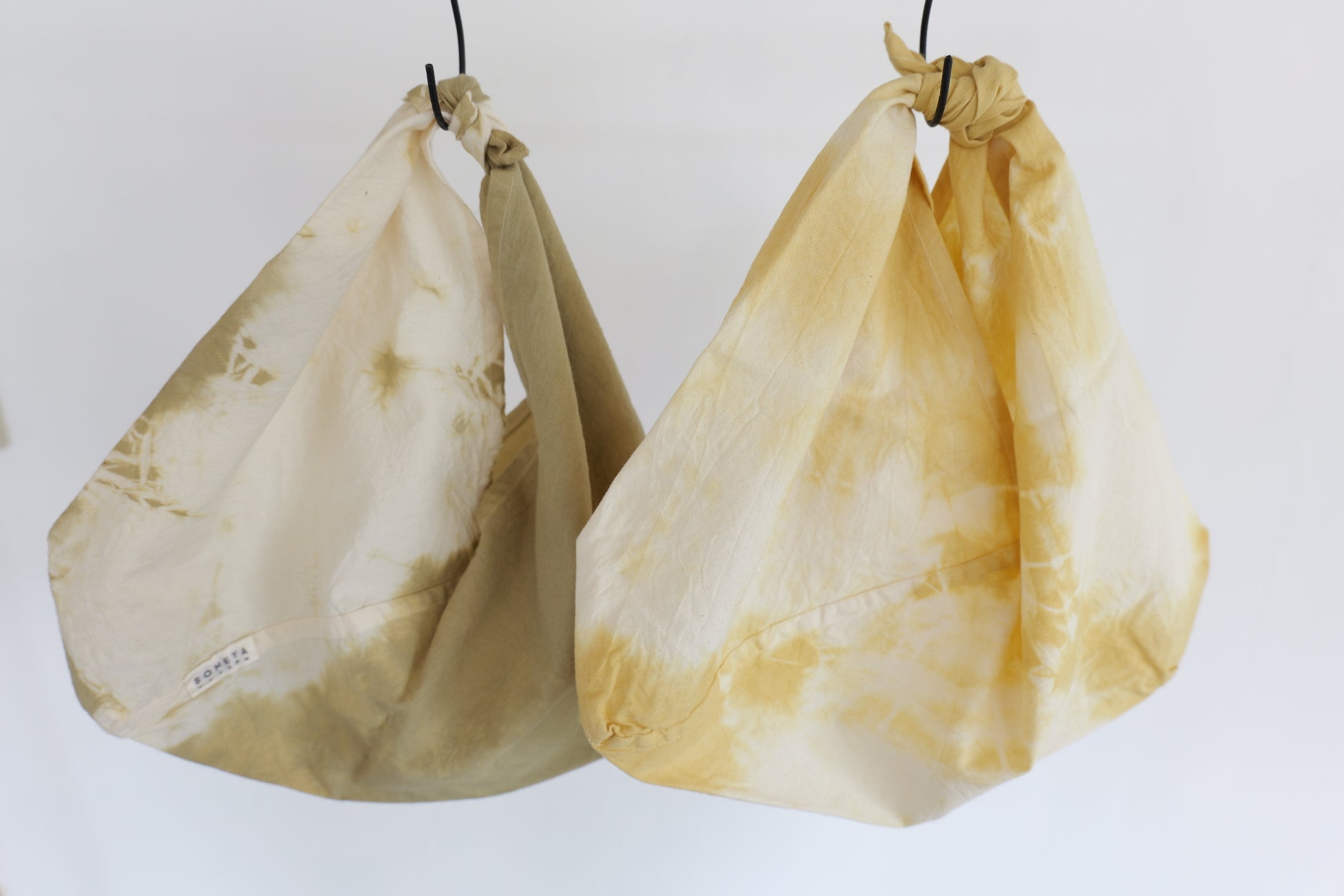 オーガニックコットンの小さな吾妻袋を、蒜山産のクロモジを使って染めるワークショップ。 植物ならではの優しい色合いとクロモジの香りを楽しみながら、簡単な絞り染めでご自身だけのオリジナルアイテムを作っていただきます。