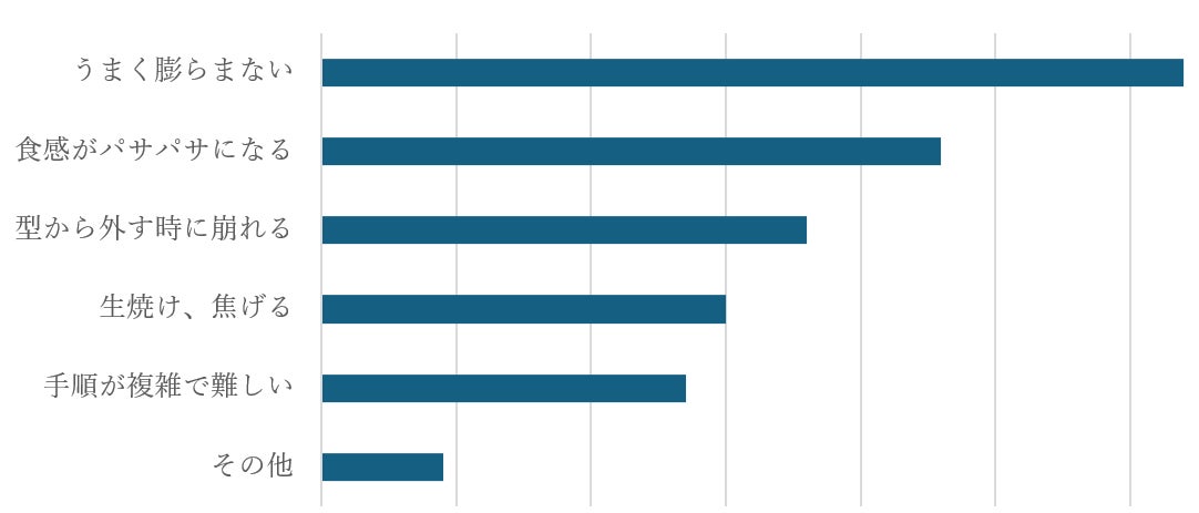 「うまく膨らまない」「食感がパサパサになる」(多数) 40代女性) 「生焼けや焦げが怖い」(30代女性)