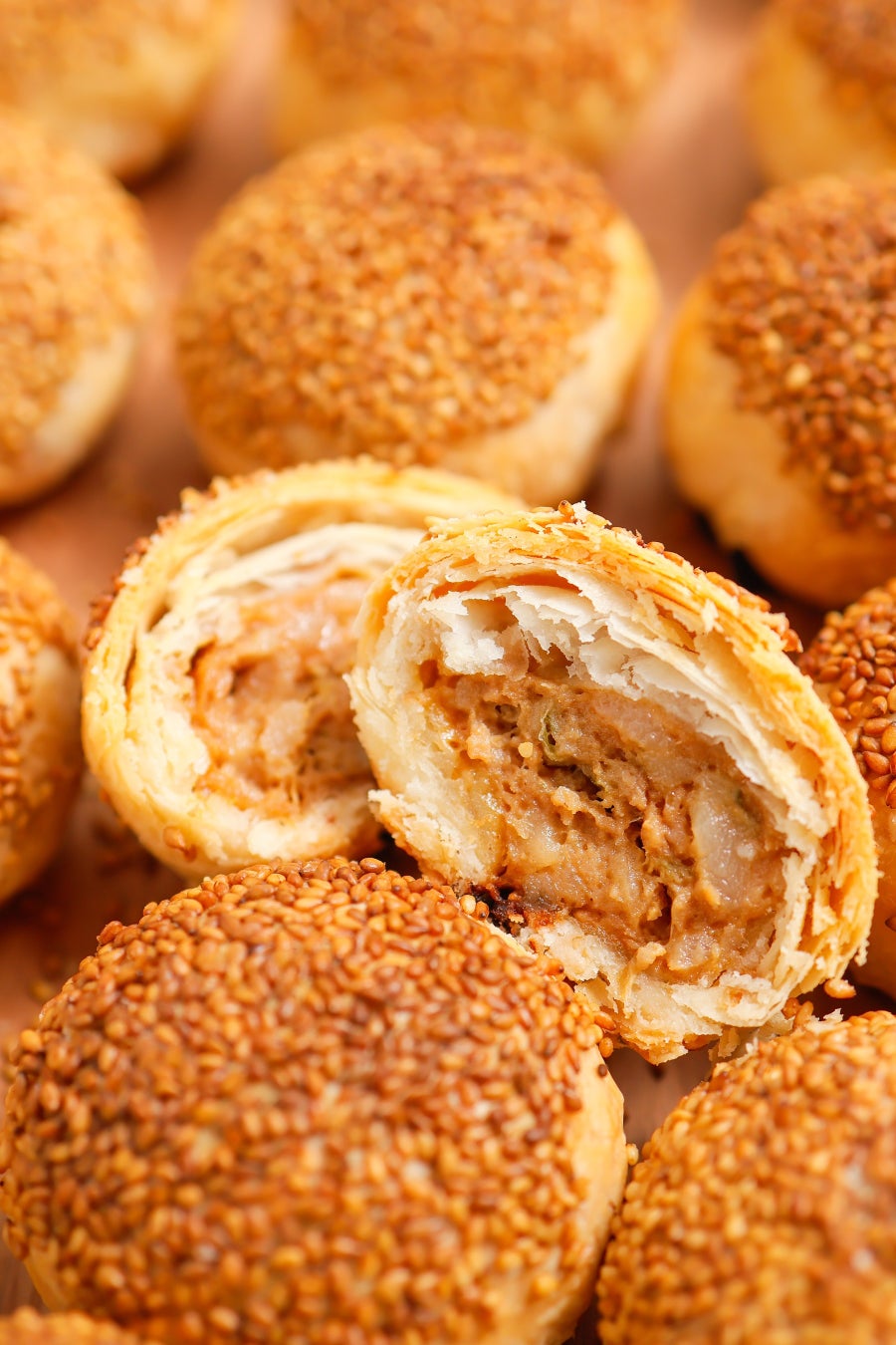 表参道、池袋、新宿と、都内でも感度の高いエリアに店舗を構え、店舗ごとに異なるオリジナルスイーツやドリンクを提供する<NANATEA&Tsutsumi(ナナティーアンドツツミ)>。名前と外見から洋菓子中心かと思いきや、池袋ファクトリー店では中華菓子のラインナップも豊富です。今回登場するジンジャーポークパイは生姜や中国醤油で調味した国産豚をパイに閉じ込めラードで焼き上げています。熱々のパイをほお張れば、ザクザクした食感と肉汁が口いっぱいにはじけます。
