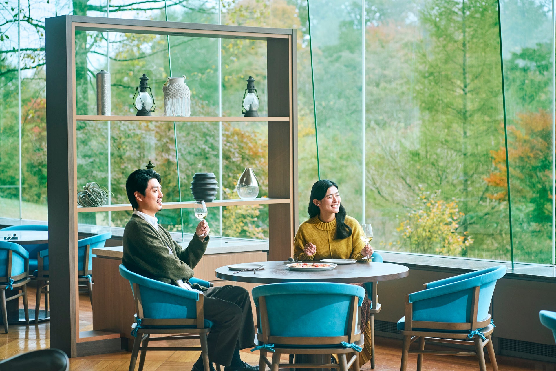 ダイニングでは、料理長のこだわりが詰まった「モーニングブッフェ」や、オードブルとメインディッシュ、デザートをそれぞれお好みに合わせて選び、組み合わせられる「ミニランチコース」、季節に応じて内容が変わるお重スタイルのアフタヌーンティーを提供し、軽井沢町内でも抜群の眺望の中で食事や喫茶を楽しむことができます。